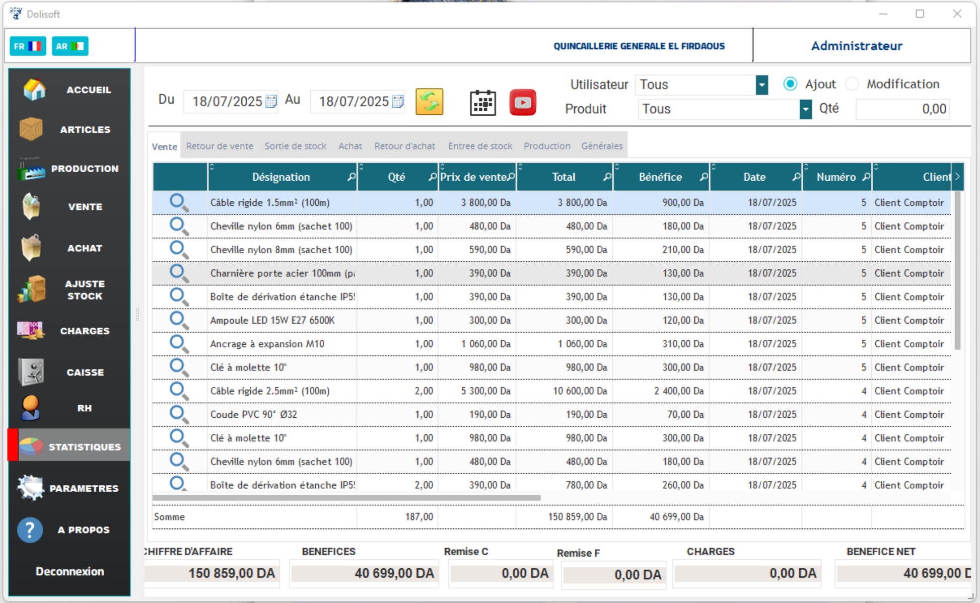 Dolisoft PRO : Stock, factures, dettes… FR & AR • Licence à vie